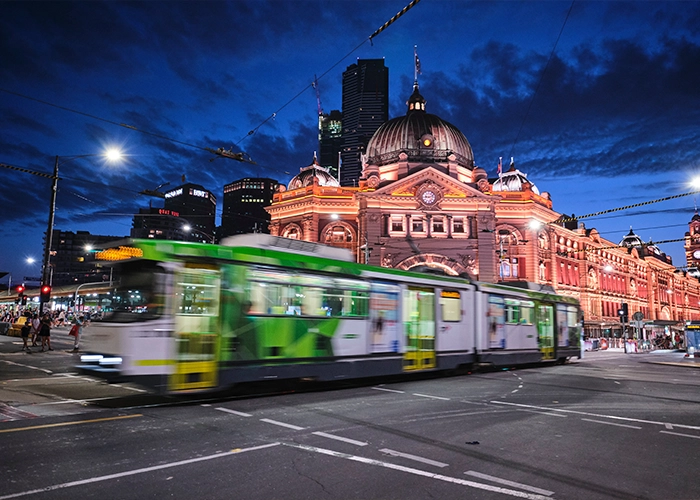 Uno de los íconos de la ciudad es la estación de trenes de Flinders Street. Esta se encuentra en pleno centro de la ciudad y a unos pasos más se encuentra Federation Square, la plaza y corazón de la ciudad donde muchas personas y viajeros se reúnen para disfrutar la tarde.
